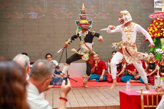 Điệu múa truyền thống của người Khmer trong lễ khai mạc dự án Tủ sách cho ĐBSCL của Thư viện số Nguyễn An Ninh. Ảnh: Đức An.