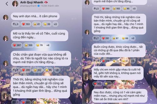 Với kinh nghiệm từng trải qua những biến cố trong cuộc sống, Phạm Quỳnh Anh đã chia sẻ những lời khuyên chân thành đến Tóc Tiên: “Buồn cũng được, khóc cũng được… tất cả những gì đã qua đều đã là một phần của cuộc đời. Đừng quá gồng mình, hãy cho bản thân một khoảng thời gian tĩnh lặng vì mọi chuyện rồi cũng sẽ qua”. Những lời này không chỉ là sự an ủi, mà còn là một lời nhắc nhở về việc yêu thương bản thân, chấp nhận những cảm xúc tiêu cực và tin tưởng vào tương lai.