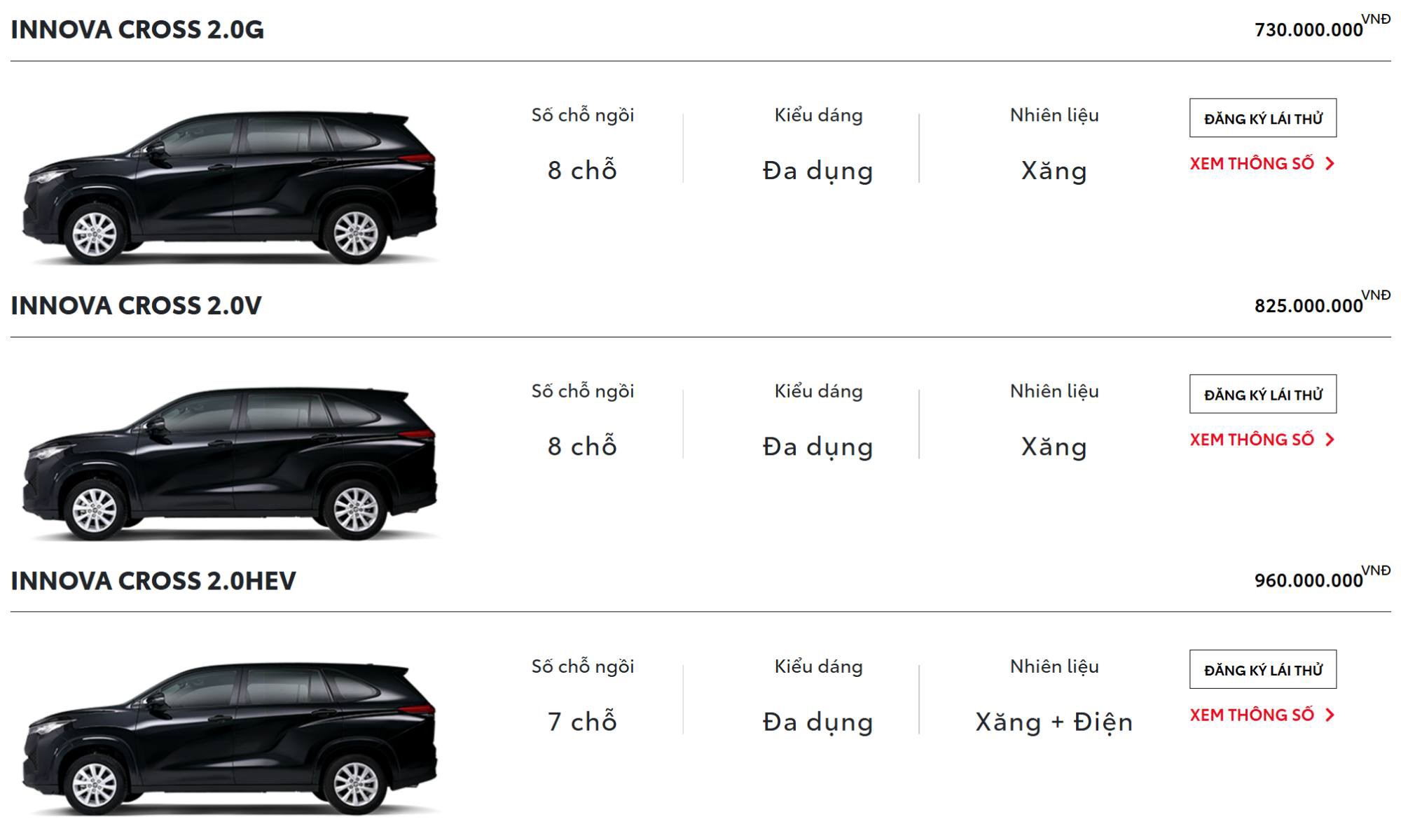Giá mới của Innova Cross HEV