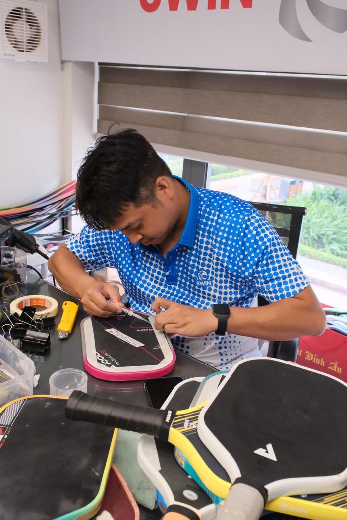 Theo chia sẻ của anh Đinh Duy Khánh, một chuyên gia kỹ thuật dày dạn kinh nghiệm tại SWIN Care – thương hiệu nổi tiếng về sửa chữa và đào tạo sửa chữa vợt pickleball chuyên nghiệp, thì phần lớn các lỗi mà người chơi gặp phải đều xuất phát từ hai nguyên nhân chính: va chạm trong quá trình thi đấu và việc bảo quản vợt chưa thực sự đúng cách. Nghe có vẻ đơn giản đúng không? Điều quan trọng là, nếu chúng ta phát hiện sớm và xử lý kịp thời, cây vợt hoàn toàn có thể “hồi sinh” và tiếp tục đồng hành cùng bạn trên sân đấu.