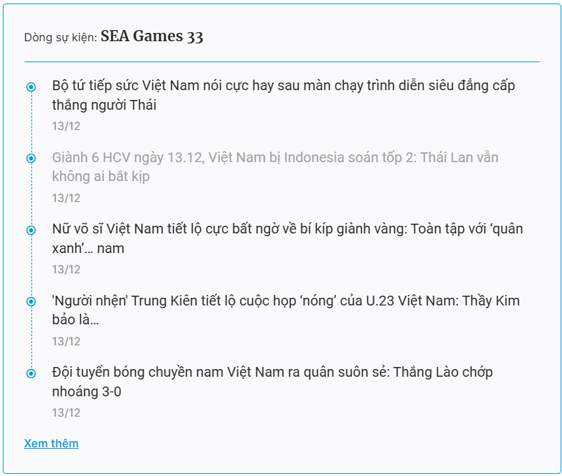 Trong ngày 13/12, các VĐV Việt Nam đã thi đấu xuất sắc ở nhiều môn thể thao khác nhau, đặc biệt là Karate, Điền kinh, và Taekwondo. Những bộ môn này tiếp tục khẳng định vị thế là thế mạnh của thể thao Việt Nam tại đấu trường khu vực.