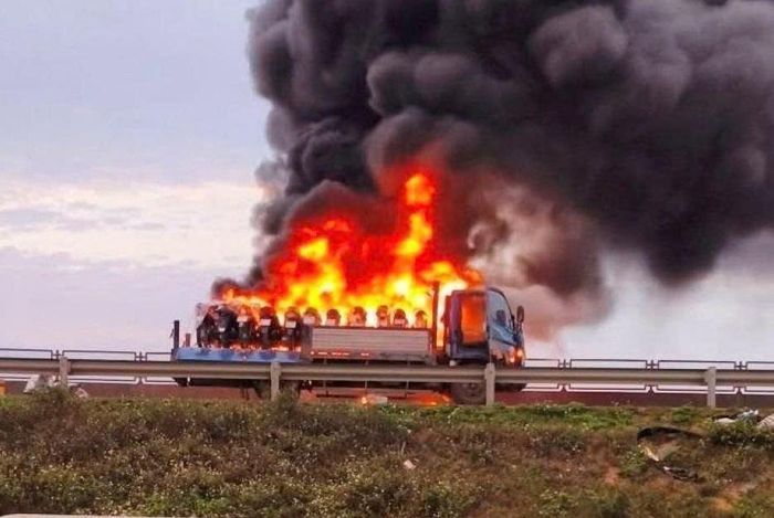Vụ việc xảy ra vào khoảng 18h30 ngày 26/2, khi chiếc xe tải mang biển kiểm soát 29H-83.2xx, do tài xế T.V.T (sinh năm 1988, trú tại tỉnh Nghệ An) điều khiển, đang di chuyển trên cao tốc Bắc – Nam theo hướng từ Nghệ An đi Hà Nội. Điều đáng nói là, trên thùng xe lúc này đang chở một số lượng lớn xe máy. Khi xe chạy đến địa phận Km324+400, thuộc phường Đông Tiến, tỉnh Thanh Hóa, mọi chuyện bất ngờ xảy ra. Lửa bùng lên từ phần phía sau của chiếc xe, và trong chốc lát, ngọn lửa đã lan nhanh ra toàn bộ chiếc xe.